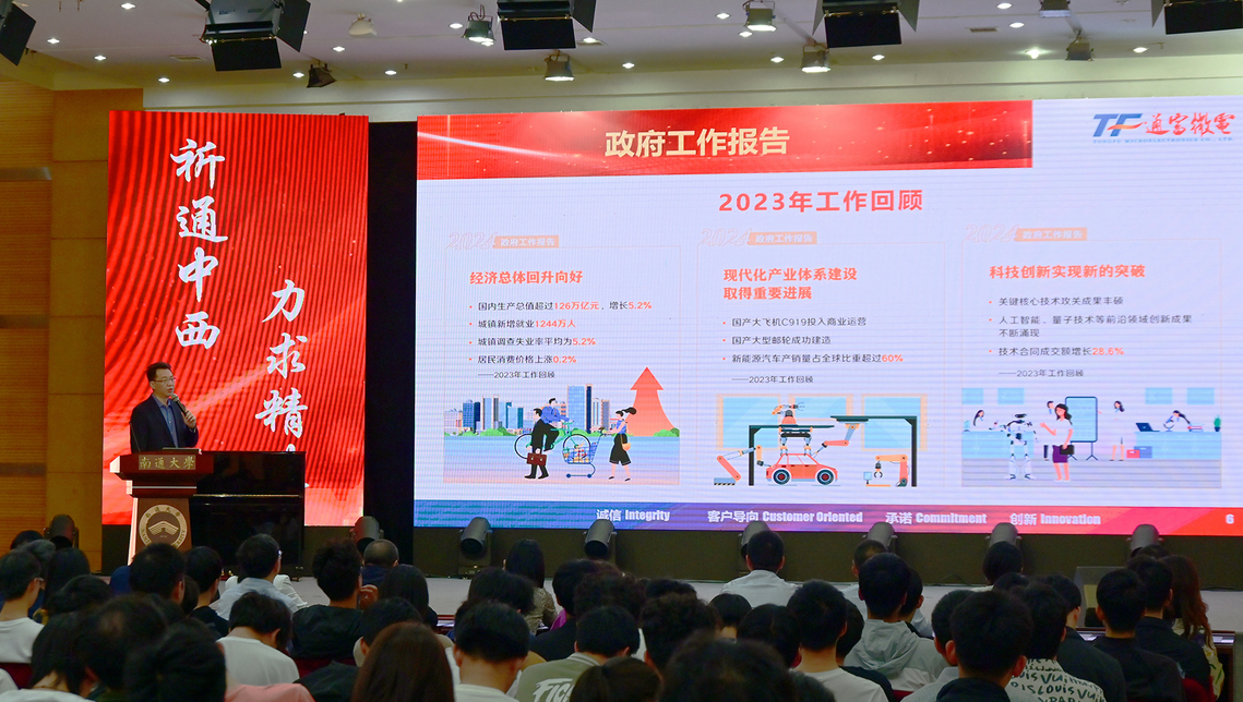 5月15日下午,第十四届全国人大代表、通富微电子股份有限公司董事长兼总裁、william威廉中文官网特聘经理石磊应邀来校做“新质生产力”专题报告。