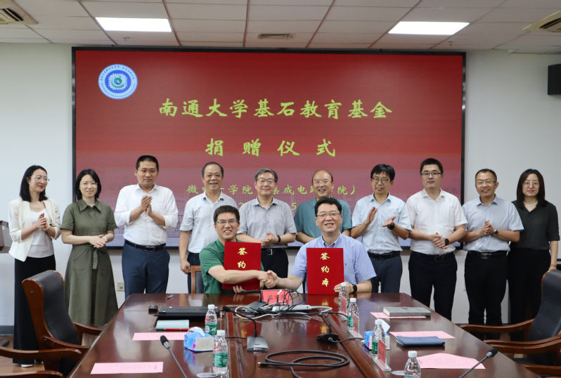 7月5日下午,公司举行基石教育基金捐赠仪式。公司党委常委、副董事长徐骏出席仪式,并向捐赠方通富微电子股份有限公司董事长兼总裁石磊颁发捐赠证书和纪念牌。