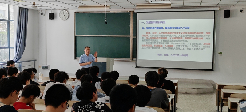 为深入学习贯彻党的二十届三中全会精神,持续推动习近平新时代中国特色社会主义思想入脑入心入行,着力培养青年员工“国之大者”的使命担当,6月4日,公司党委常委、副董事长徐骏以《发展新科技 实现中国式现代化》为题,为william威廉中文官网电子科学与技术专业2024级员工讲授《形势与政策》课。