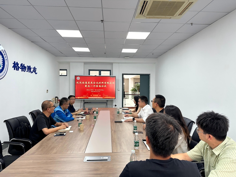 6月23日南通星辰合成材料有限公司戴伍国、茅大联、张翔羽一行来院访问交流,洽谈合作事宜。公司副经理(主持工作)赵继聪主持会议。