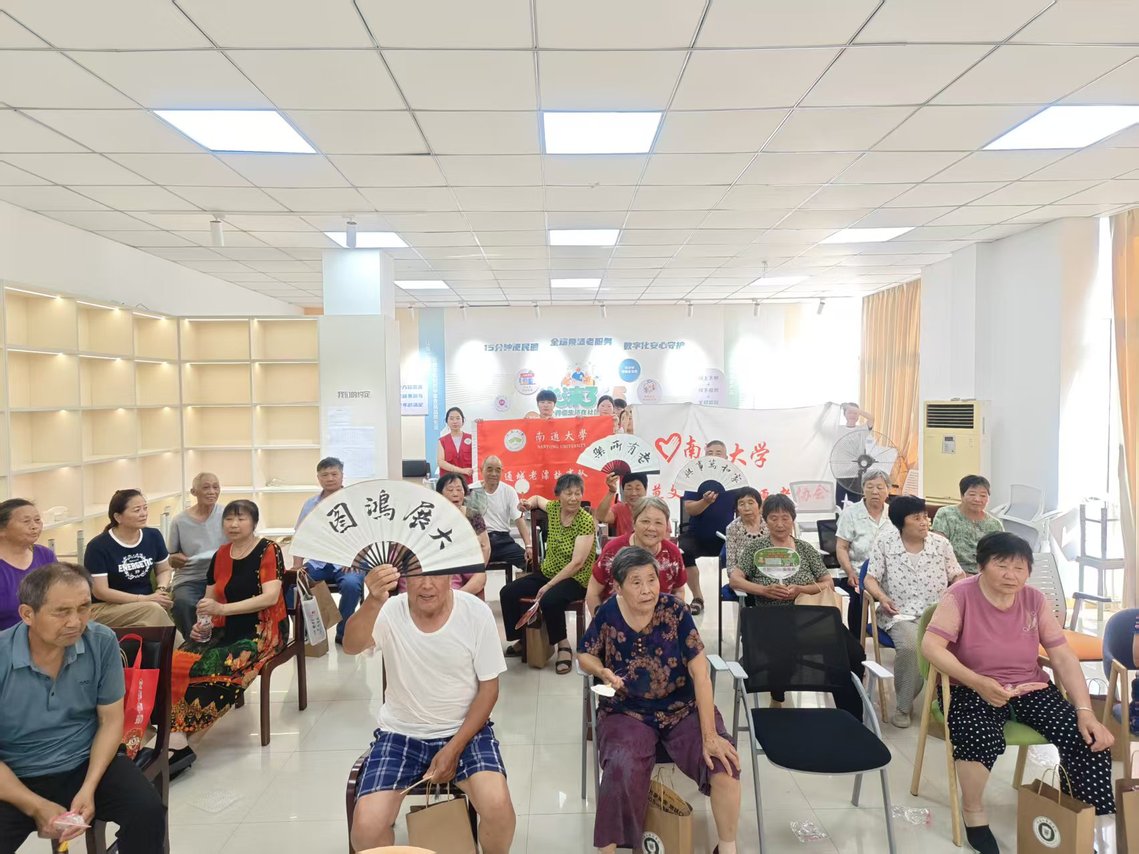 创作间隙,一场温馨的 “故事会” 自然展开。来自连云港的王奶奶,捧着自己刚做好的、带着淡紫色晕染的漆扇,缓缓说起了她在通城的异乡故事。“刚到这儿的时候,听不懂本地话,出门买个菜都犯怵。” 王奶奶笑着说,“后来邻居们瞧见了,就慢慢教我,哪家的菜新鲜,哪家的老板实在,都一五一十告诉我。现在啊,我在这儿住得比老家还熟络,社区活动也总喊我,这不,今天又和你们这些孩子一块儿做扇子,心里暖乎乎的。”同学们也和老人们分享自己的老员工活和日常小趣事。从老人口中的 “阖家团圆” 到年轻人讲的 “宿舍情深”,不同年代的生活片段,在笑声中找到了共鸣。